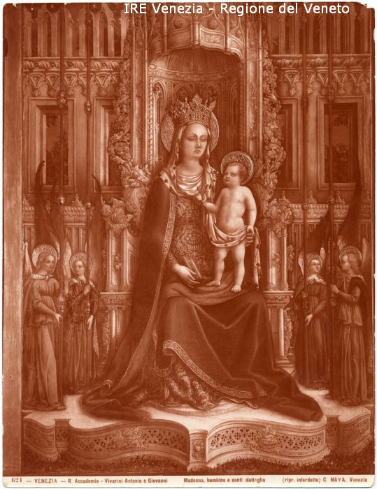 - ISCRIZIONI sul recto: in basso - 624 - VENEZIA - R. Accademia/ Vivarini Antonio e Giovanni/ Madonna, bambino e santi (dettaglio)/ (ripr. interdetta) C. NAYA. Venezia - fotografica -