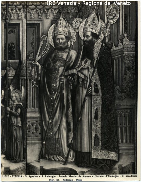 - ISCRIZIONI sul recto: in basso - 11512 - VENEZIA - S. Agostino e S. Ambrogio - Antonio Vivarini da Murano e Giovanni d'Alemagna - R. Accademia/ Ripr. Int. - Anderson - Roma - fotografica -