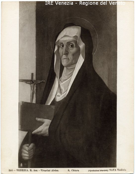 - ISCRIZIONI sul recto: in basso - 244 - VENEZIA. R. Acc. - Vivarini Alvise./ S. Chiara/ (riproduzione interdetta) NAYA Venezia - fotografica -
