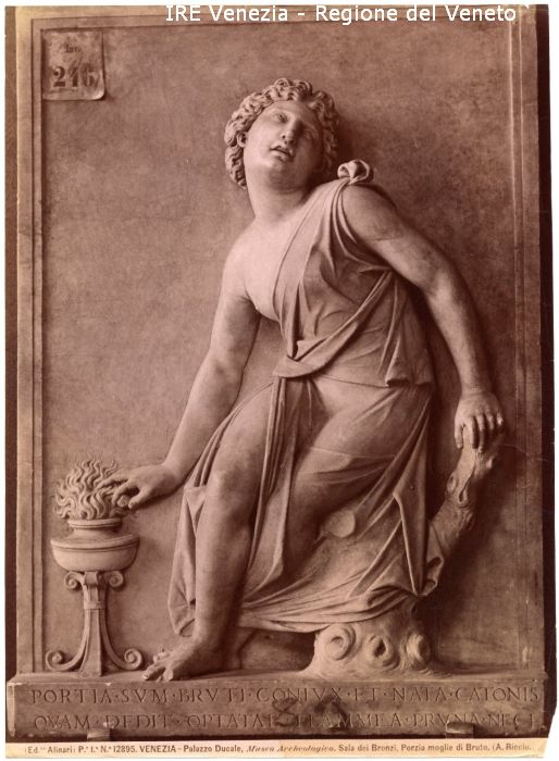 - ISCRIZIONI sul recto: in basso - (Ed.ne Alinari) P.e I.a N.° 12895. VENEZIA - Palazzo Ducale, Museo Archeologico. Sala dei Bronzi, Porzia moglie di Bruto. (A. Riccio) - fotografica -