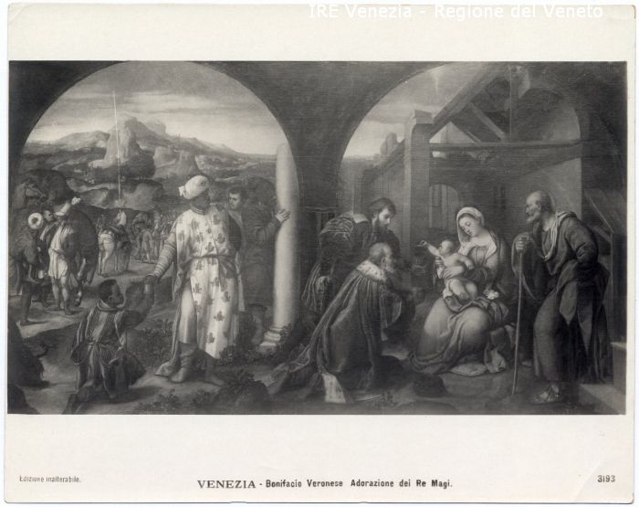 - ISCRIZIONI sul recto: in basso - Edizione inalterabile./ VENEZIA - Bonifacio Veronese Adorazione dei Re Magi./ 3193 - fotografica -