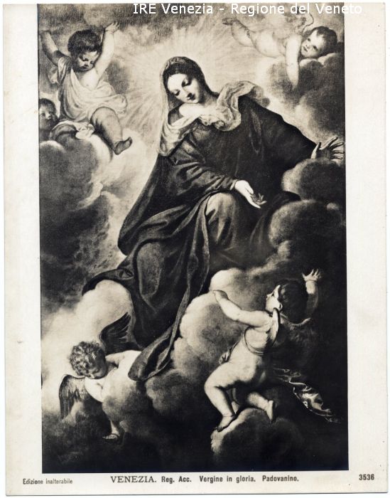 - ISCRIZIONI sul recto: in basso - Edizione inalterabile./ VENEZIA. Reg. Acc. Vergine in gloria - Padovanino./ 3536 - fotografica -