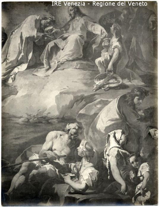 - ISCRIZIONI sul verso: in basso - particolare del quadro - Moltiplicazione del pane e del pesce/ G. Batt. Pittoni/ Ch. S. Stefano - a matita -