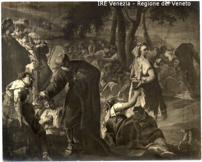 - ISCRIZIONI sul verso: in basso - Ch. S. Stefano/ particolare del quadro la moltiplicazione dei pani e pesci/ GB. Pittoni - a matita -