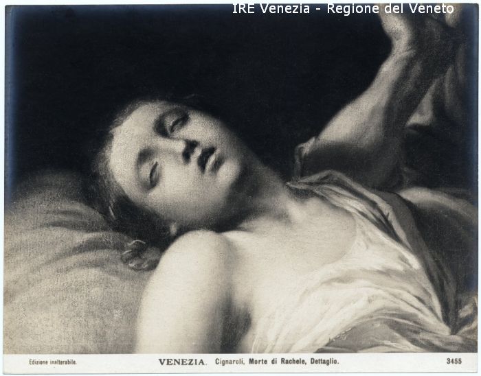 - ISCRIZIONI sul recto: in basso - Edizione inalterabile./ VENEZIA. Cignaroli. Morte di Rachele. Dettaglio./ 3455 - fotografica -