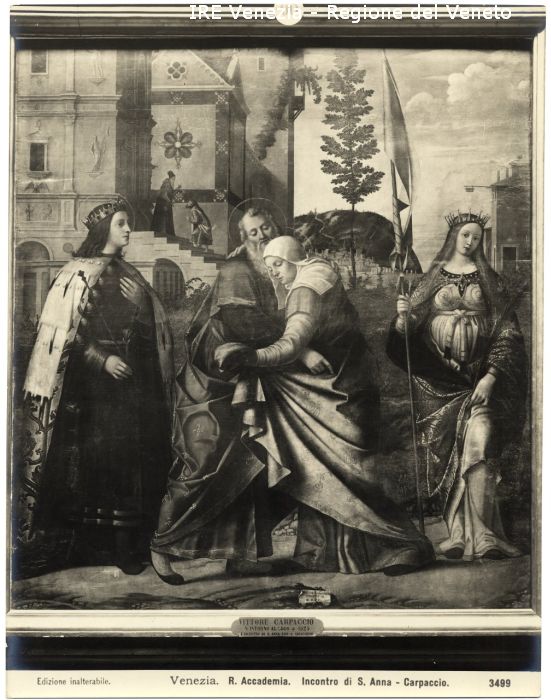 - ISCRIZIONI sul recto: in basso - Edizione inalterabile./ Venezia. R. Accademia. Incontro di S. Anna - Carpaccio./ 3499 - fotografica -