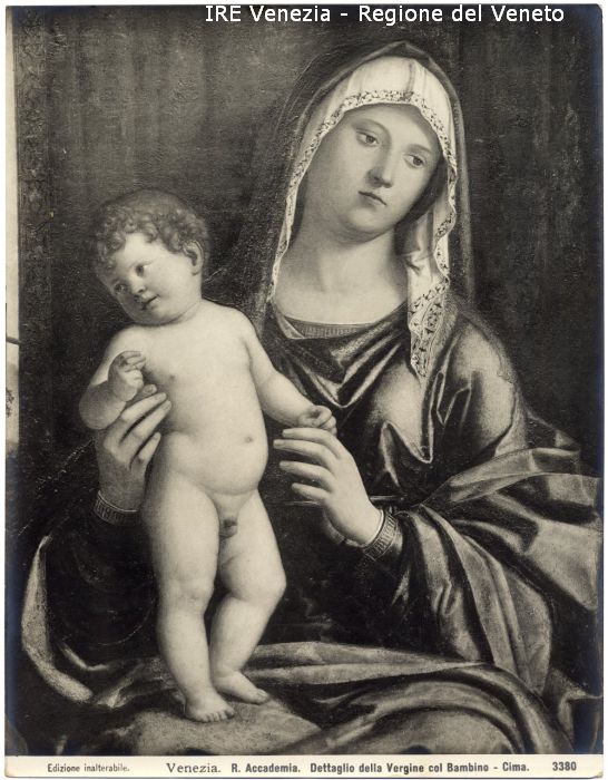 - ISCRIZIONI sul recto: in basso - Edizione inalterabile./ Venezia. R. Accademia. Dettaglio della Vergine col Bambino - Cima./ 3380 - fotografica -