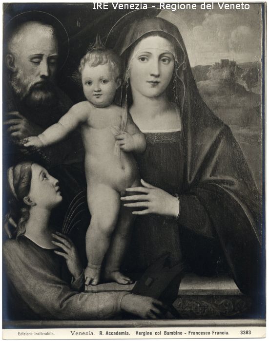 - ISCRIZIONI sul recto: in basso - Edizione inalterabile./ Venezia. R. Accademia. Vergine col Bambino - Francesco Francia./ 3383 - fotografica -