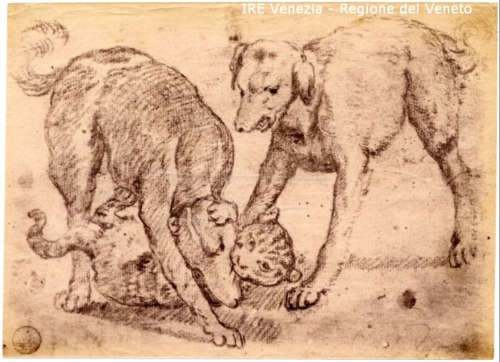Veronese, Paolo, Studio per animali: cani e gatto, n. 4