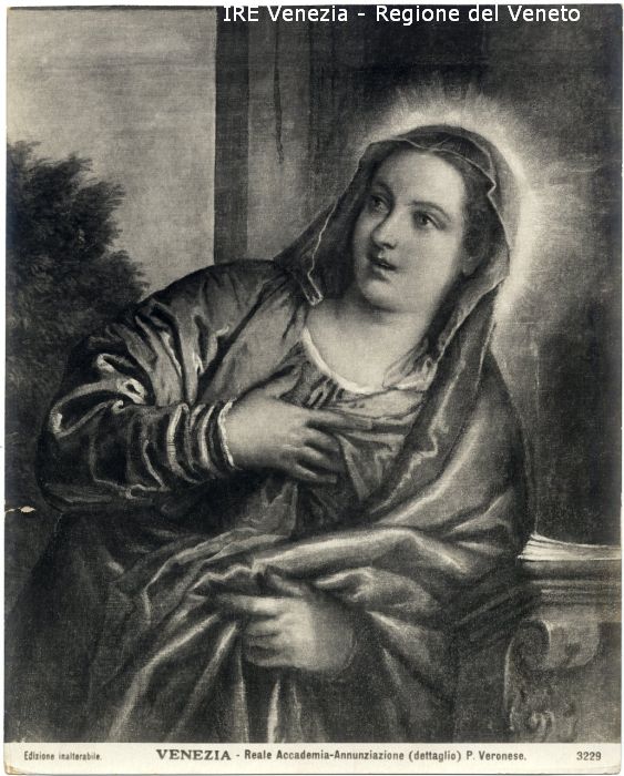 - ISCRIZIONI sul recto: in basso - Edizione inalterabile./ VENEZIA - Reale Accademia - Annunziazione (dettaglio) P. Veronese./ 3229 - fotografica -