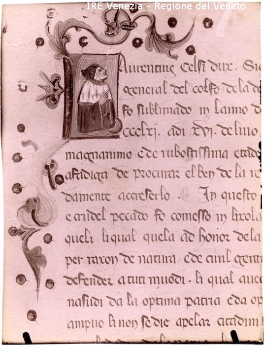 Promissioni dogali - Miniature: Doge Lorenzo Celsi, decorazione vegetale