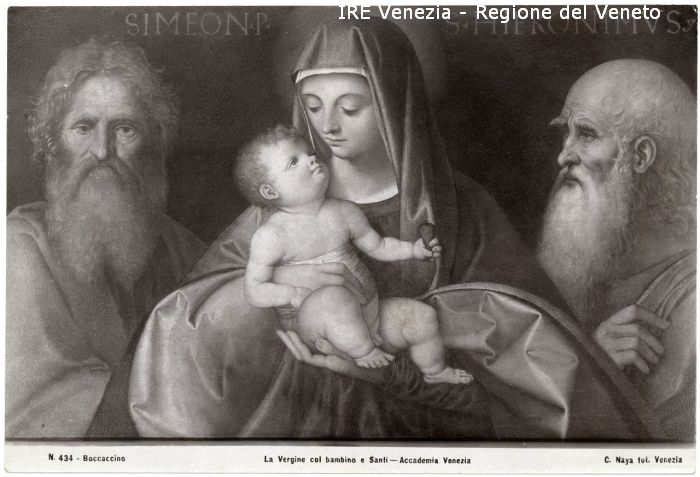 - ISCRIZIONI sul recto: in basso - N. 434 - Boccaccino/ La Vergine col Bambino e Santi - Accademia Venezia/ C. Naya fot. Venezia - fotografica -