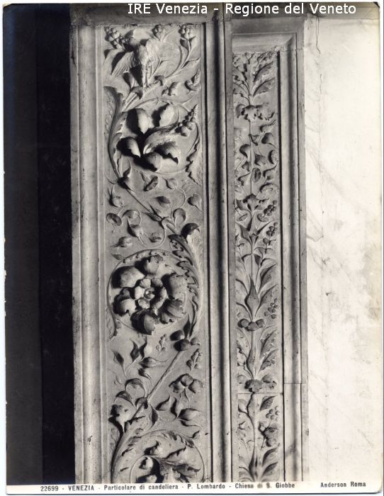 - ISCRIZIONI sul recto: in basso - 22699 - VENEZIA - Particolare di candeliera - P. Lombardo -Chiesa di S. Giobbe/ Riproduzione interdetta Anderson Roma - fotografica -
