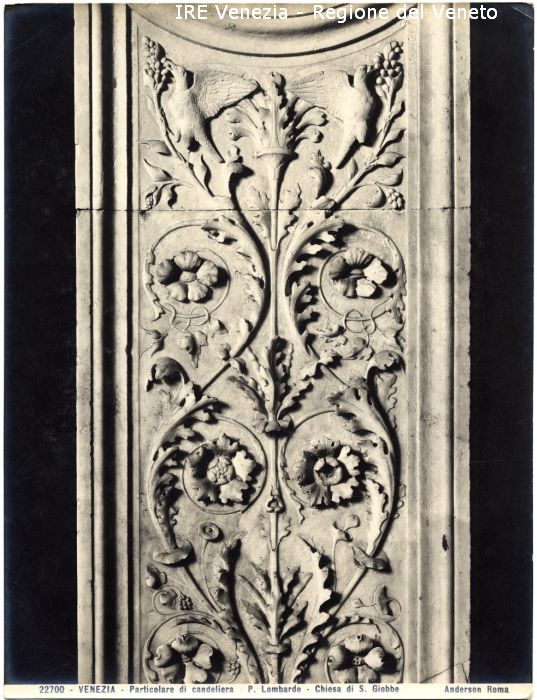 - ISCRIZIONI sul recto: in basso - 22700 - VENEZIA - Particolare di candeliera - P. Lombardo -Chiesa di S. Giobbe/ Riproduzione interdetta Anderson Roma - fotografica -