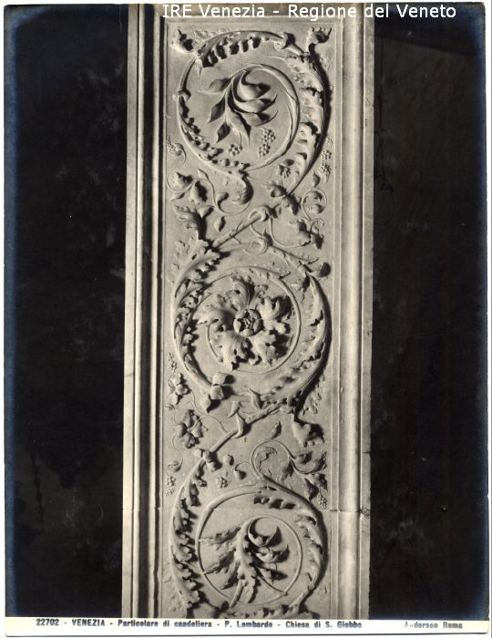 - ISCRIZIONI sul recto: in basso - 22702 - VENEZIA - Particolare di candeliera - P. Lombardo -Chiesa di S. Giobbe/ Riproduzione interdetta Anderson Roma - fotografica -