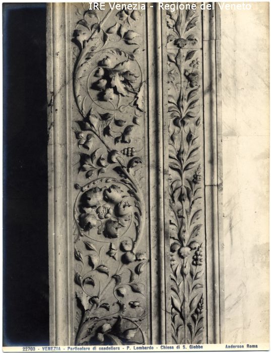 - ISCRIZIONI sul recto: in basso - 22703 - VENEZIA - Particolare di candeliera - P. Lombardo -Chiesa di S. Giobbe/ Riproduzione interdetta Anderson Roma - fotografica -