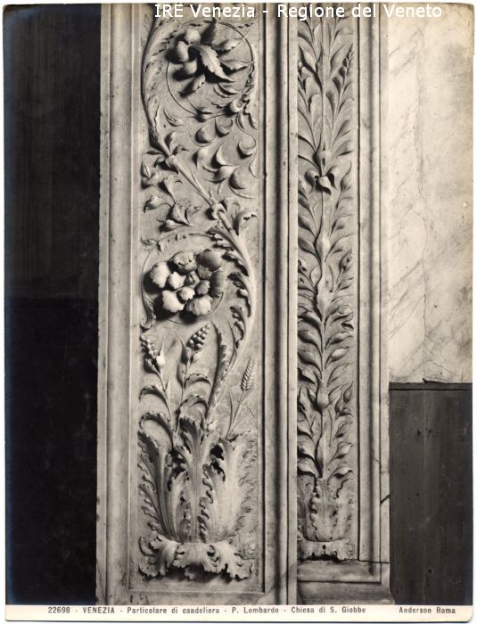 - ISCRIZIONI sul recto: in basso - 22698 - VENEZIA - Particolare di candeliera - P. Lombardo -Chiesa di S. Giobbe/ Anderson Roma - fotografica -