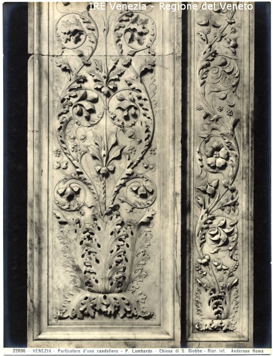 - ISCRIZIONI sul recto: in basso - 22696 - VENEZIA - Particolare d'una candeliera - P. Lombardo - Chiesa di S. Giobbe - Ripr. int. Anderson Roma - fotografica -