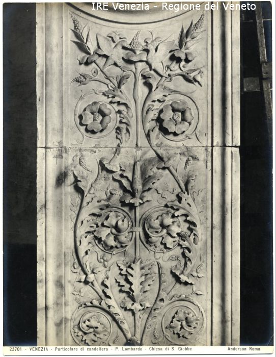 - ISCRIZIONI sul recto: in basso - 22701 - VENEZIA - Particolare di candeliera - P. Lombardo - Chiesa di S. Giobbe/ Anderson Roma - fotografica -