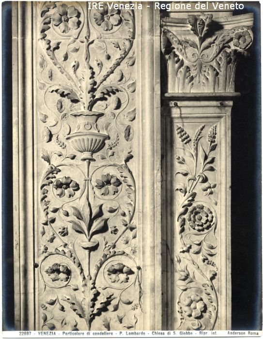 - ISCRIZIONI sul recto: in basso - 22697 - VENEZIA - Particolare di candeliera - P. Lombardo - Chiesa di S. Giobbe - Ripr. int. Anderson Roma - fotografica -