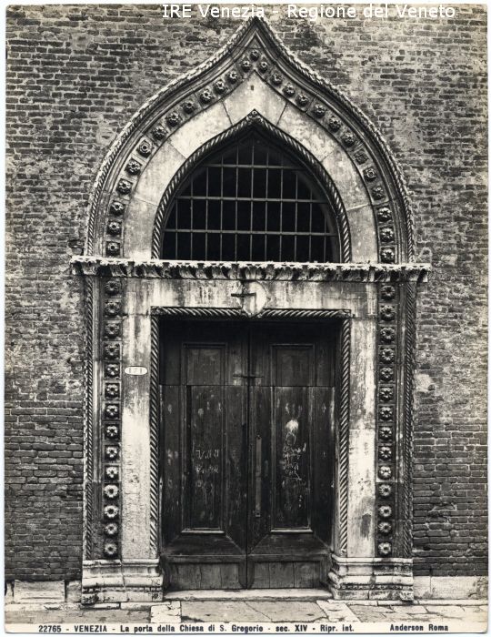 - ISCRIZIONI sul recto: in basso - 22765 - VENEZIA - La porta della Chiesa di S. Gregorio - sec. XIV - Ripr. int./ Anderson Roma - fotografica -