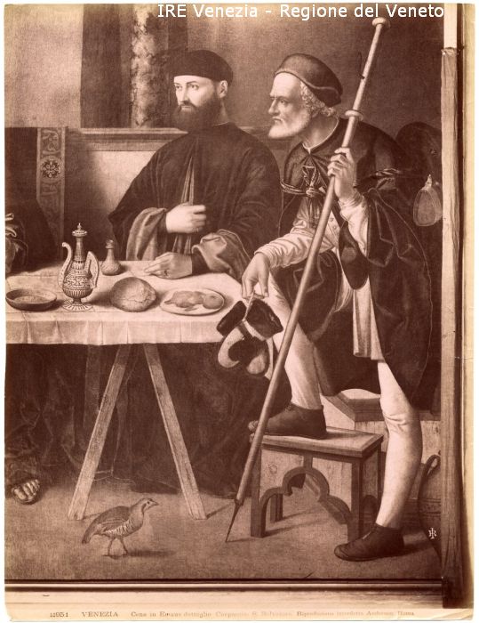 - ISCRIZIONI sul recto: in basso - 11951/ VENEZIA/ Cena in Emaus dettaglio Carpaccio) S. Salvatore. Riproduzione interdetta Anderson, Roma - fotografica -