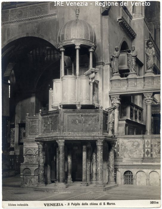 - ISCRIZIONI sul recto: in basso - Edizione inalterabile./ VENEZIA - Il Pulpito della chiesa di S. Marco./ 3015 m - fotografica -