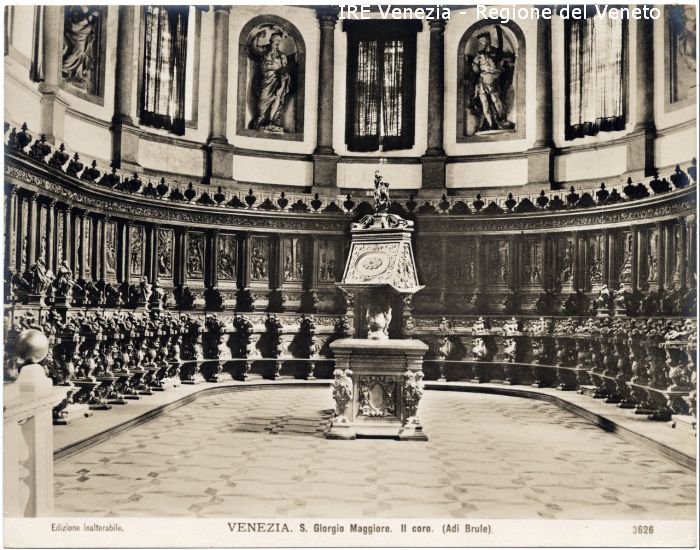- ISCRIZIONI sul recto: in basso - Edizione inalterabile./ VENEZIA - S. Giorgio Maggiore. Il coro. (Adi Brule)./ 3626 - fotografica -