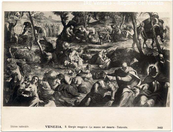 - ISCRIZIONI sul recto: in basso - Edizione inalterabile./ VENEZIA. S. Giorgio Maggiore - La manna nel deserto - Tintoretto./ 3462 - fotografica -