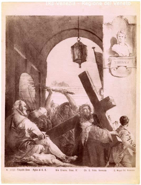 - ISCRIZIONI sul recto: in basso - N. 1151 - Tiepolo Dom. (figlio di G. B.)/ Via Crucis. Staz. II.a/ Ch. S. Polo. Venezia/ C. Naya fot. Venezia - fotografica -