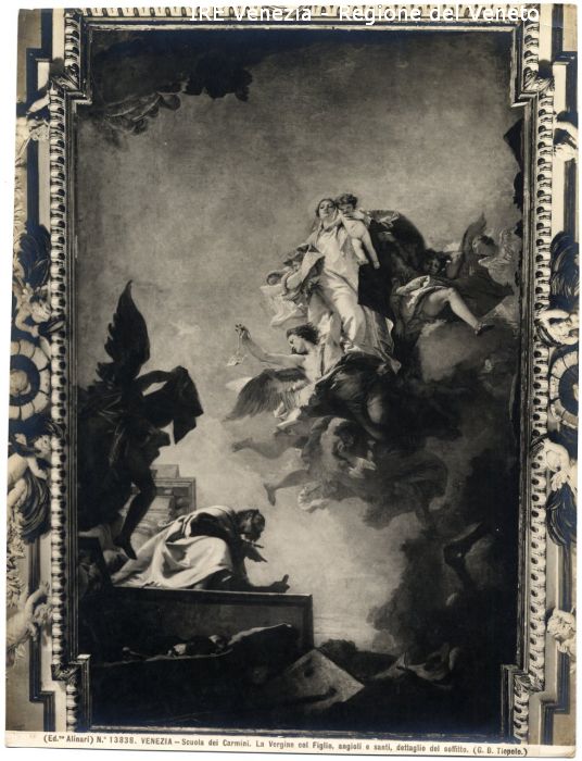 - ISCRIZIONI sul recto: in basso - (Ed.ne Alinari) N.° 13838. VENEZIA - Scuola dei Carmini. La Vergine col Figlio, angioli e santi, dettaglio del soffitto. (G. B. Tiepolo) - fotografica -