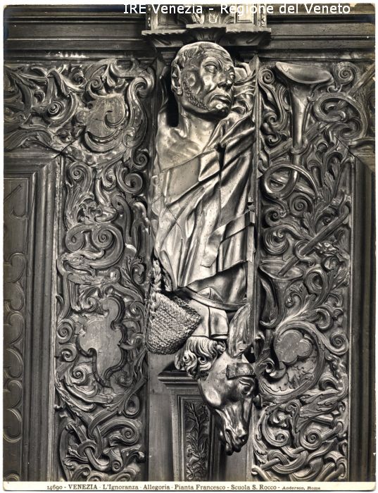 - ISCRIZIONI sul recto: in basso - 14690 - VENEZIA - L'Ignoranza - Allegoria - Pianta Francesco - Scuola S. Rocco - Anderson, Roma - a matita -