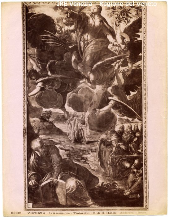 - ISCRIZIONI sul recto: in basso - 13668 - VENEZIA - L'Ascensione - Tintoretto - S. di S. Rocco. Anderson - Roma. - fotografica -