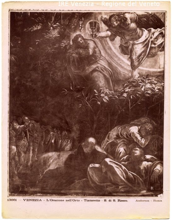 - ISCRIZIONI sul recto: in basso - 13661 - VENEZIA - L'Orazione nell'Orto - Tintoretto - S. di S. Rocco. Anderson - Roma - fotografica -