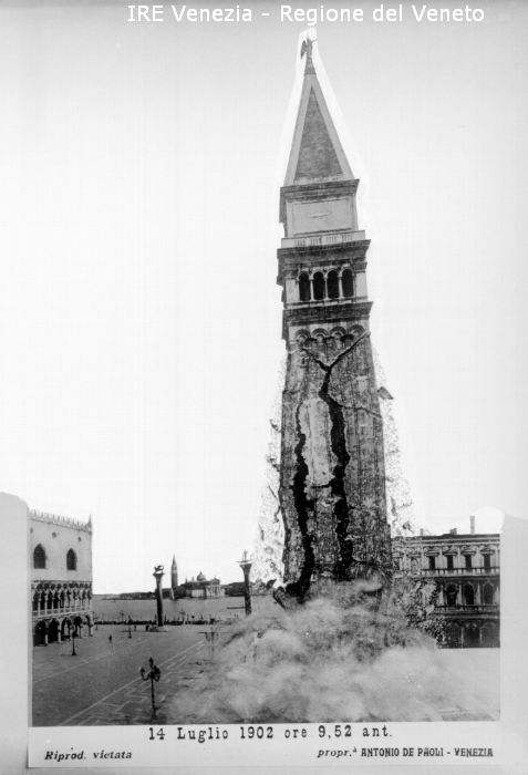 Venezia, fotomontaggio, il falso crollo del campanile di San Marco