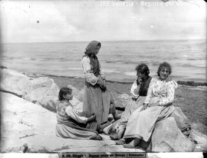Venezia - Vita veneziana e lagunare - Scene e costumi - "D'après nature" - Territorio di Chioggia - Sottomarina: i Murazzi - Quattro ragazze - Conversazione