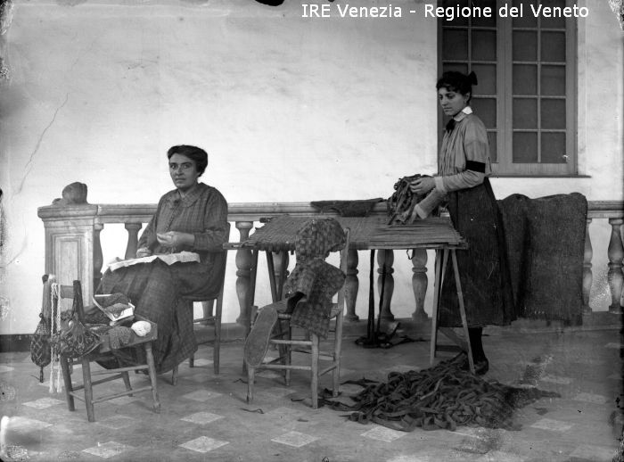 Documentazione socio culturale - Genova - Palazzo Musso Piantelli - Colonia di sfollati veneziani - Attività - Infilatrici di perle - "Impiraresse" di Filippi, Tomaso (XX)