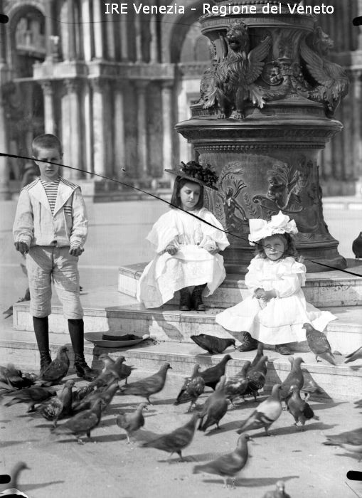 Venezia, piazza San Marco, bambini con piccioni di Filippi, Tomaso (XIX)