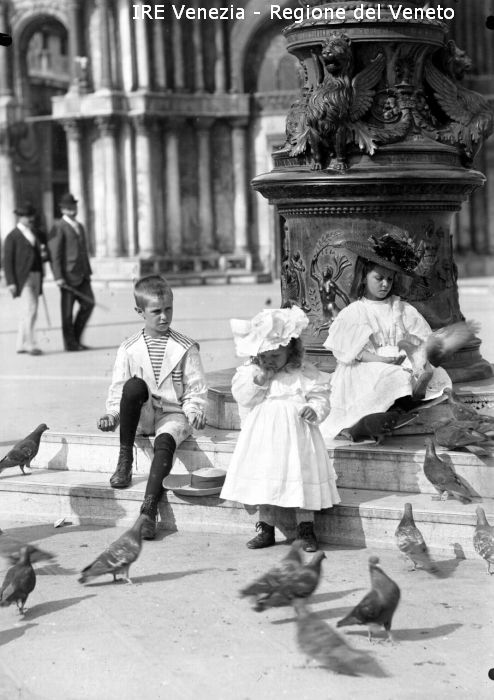 Venezia, piazza San Marco, bambini con piccioni di Filippi, Tomaso (XIX)