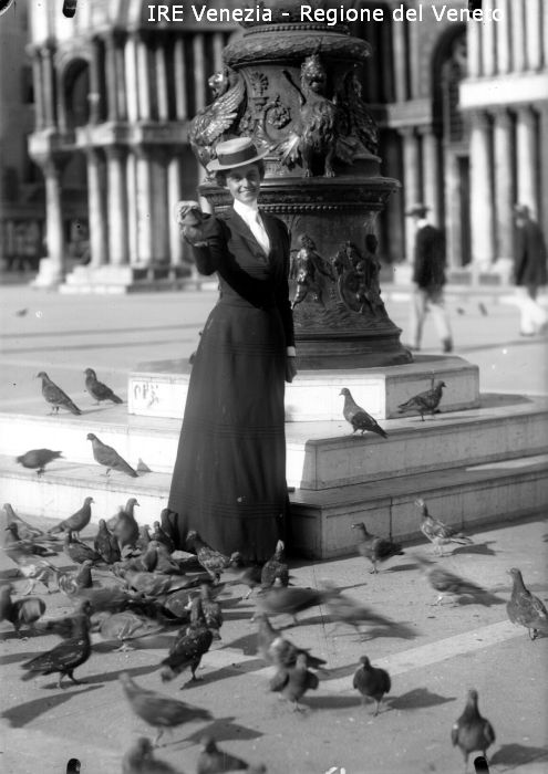 Venezia, piazza San Marco, turista con piccioni di Filippi, Tomaso (XIX)
