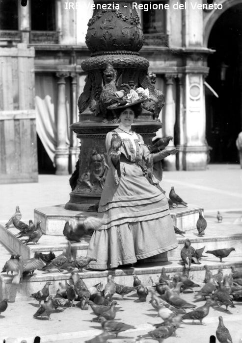 Venezia, piazza San Marco, turista con piccioni di Filippi, Tomaso (XIX)