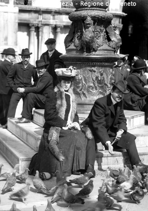 Venezia, piazza San Marco, turisti con piccioni di Filippi, Tomaso (XIX)