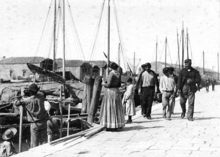 Vita veneziana e lagunare - Chioggia - Fondamenta Lombardo - Passanti - Imbarcazioni ormeggiate