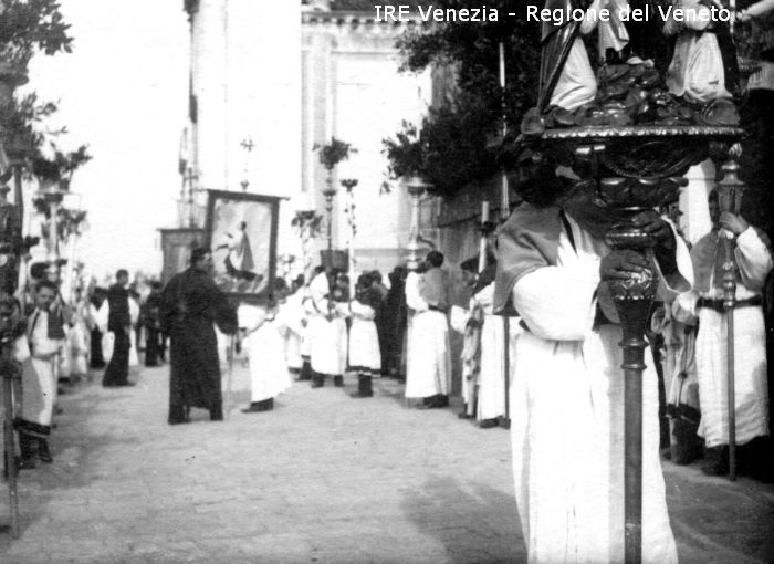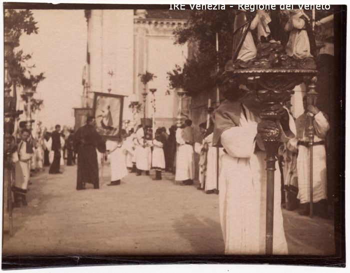 Venezia - Vita veneziana e lagunare - Manifestazioni religiose - Processione del Corpus Domini - Zattere: fondamenta, verso la chiesa di S. Maria del Rosario vulgo Gesuati - Preparativi - Segnale - Vessillo