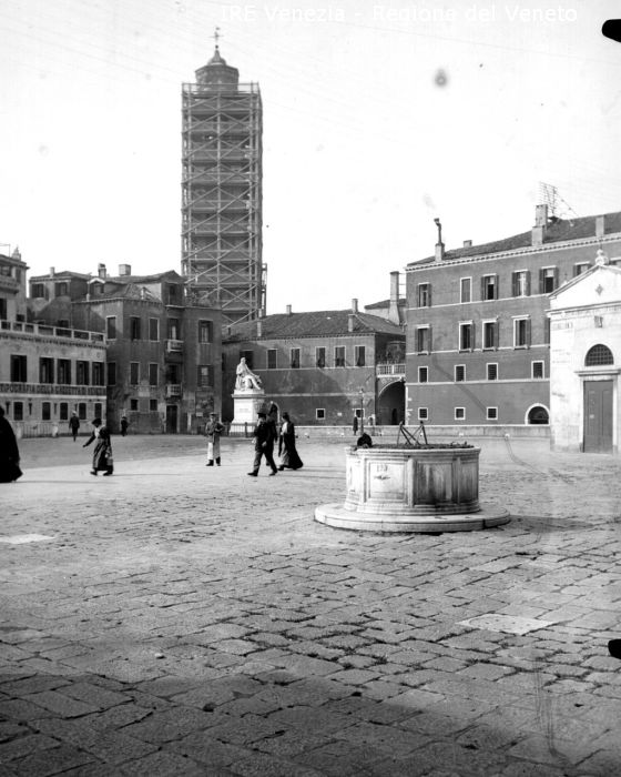 Venezia, campo Sant'Angelo con monumento a Paleocapa verso il campanile di Santo Stefano di Filippi, Tomaso (XIX)