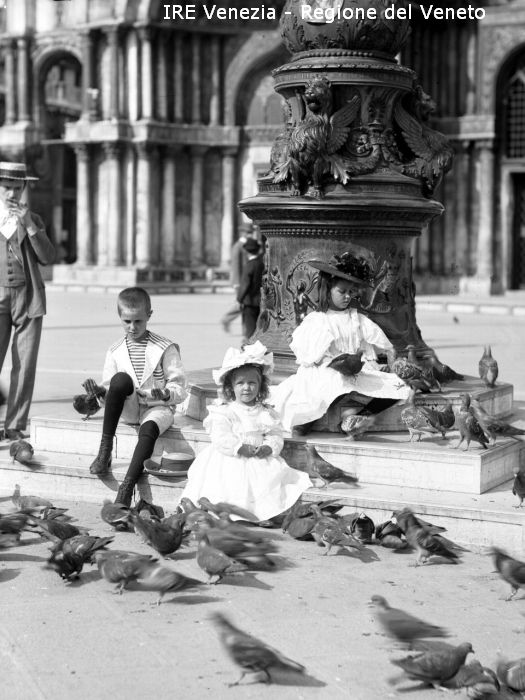 Venezia, piazza San Marco, bambini con piccioni di Filippi, Tomaso (XIX)