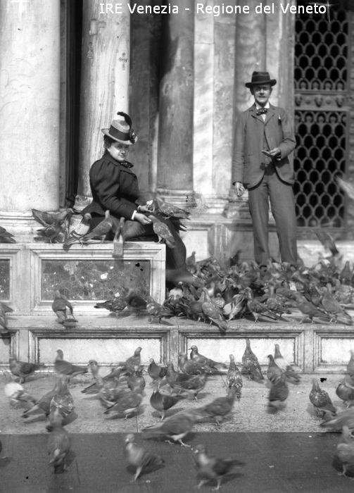 Venezia, piazza San Marco, turisti con piccioni di Filippi, Tomaso (XIX)