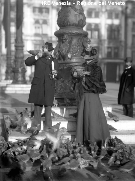 Venezia, piazza San Marco, turisti con piccioni di Filippi, Tomaso (XIX)