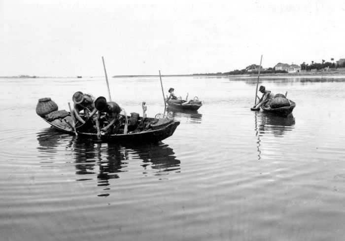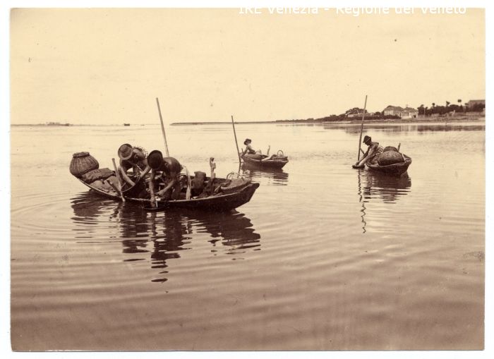 Venezia - Vita veneziana e lagunare - Scene e costumi - Pesca in Laguna - Laguna di Venezia - Imbarcazione: sc'iopon o caicio - Vieri - Pescatori