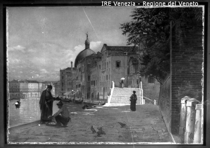 Venezia, riproduzione dipinto, A. Bonutto, veduta da fondamenta della croce di Filippi, Tomaso (XX)